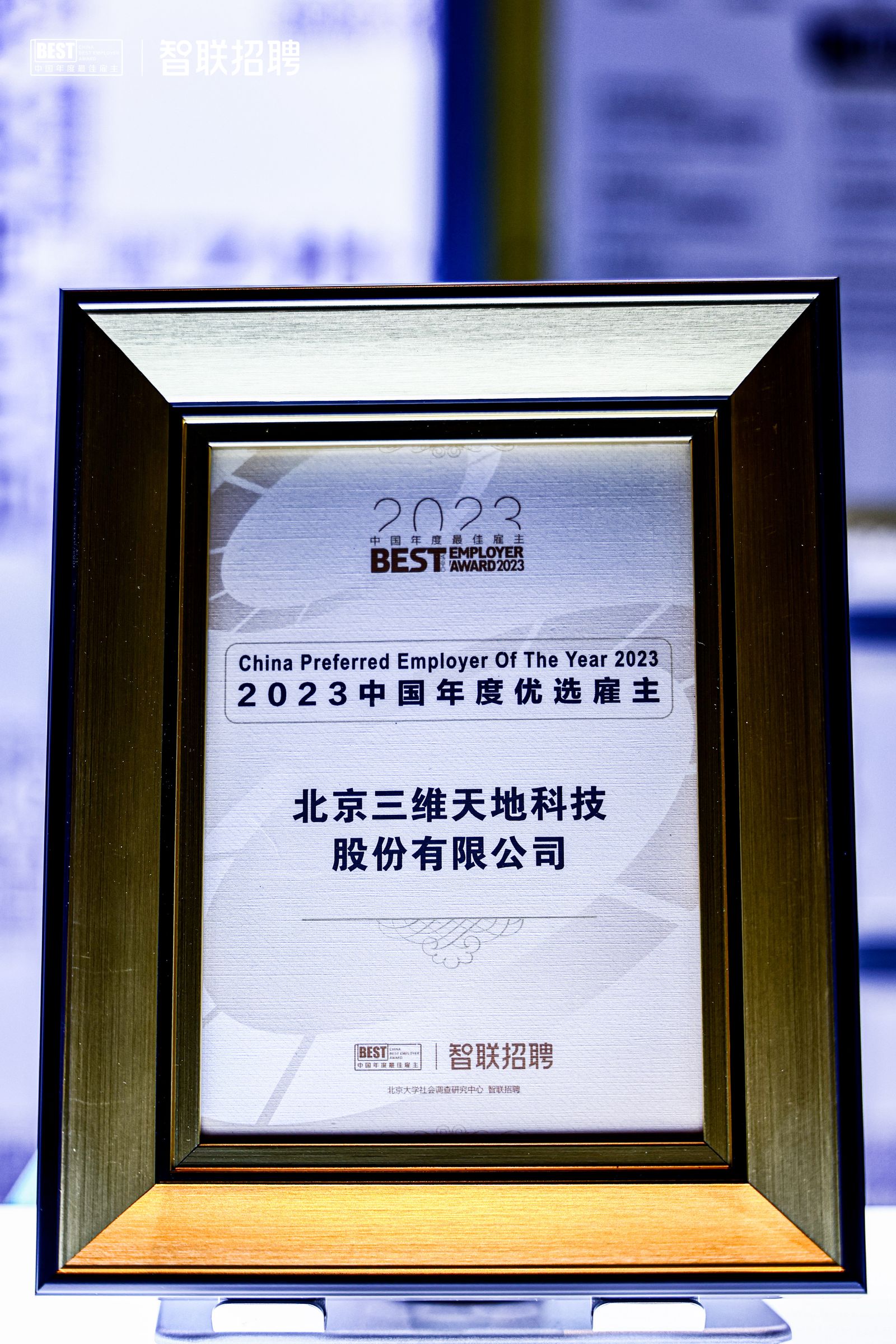 喜訊 | 三維天地獲評(píng)“2023中國年度優(yōu)選雇主”稱號(hào)