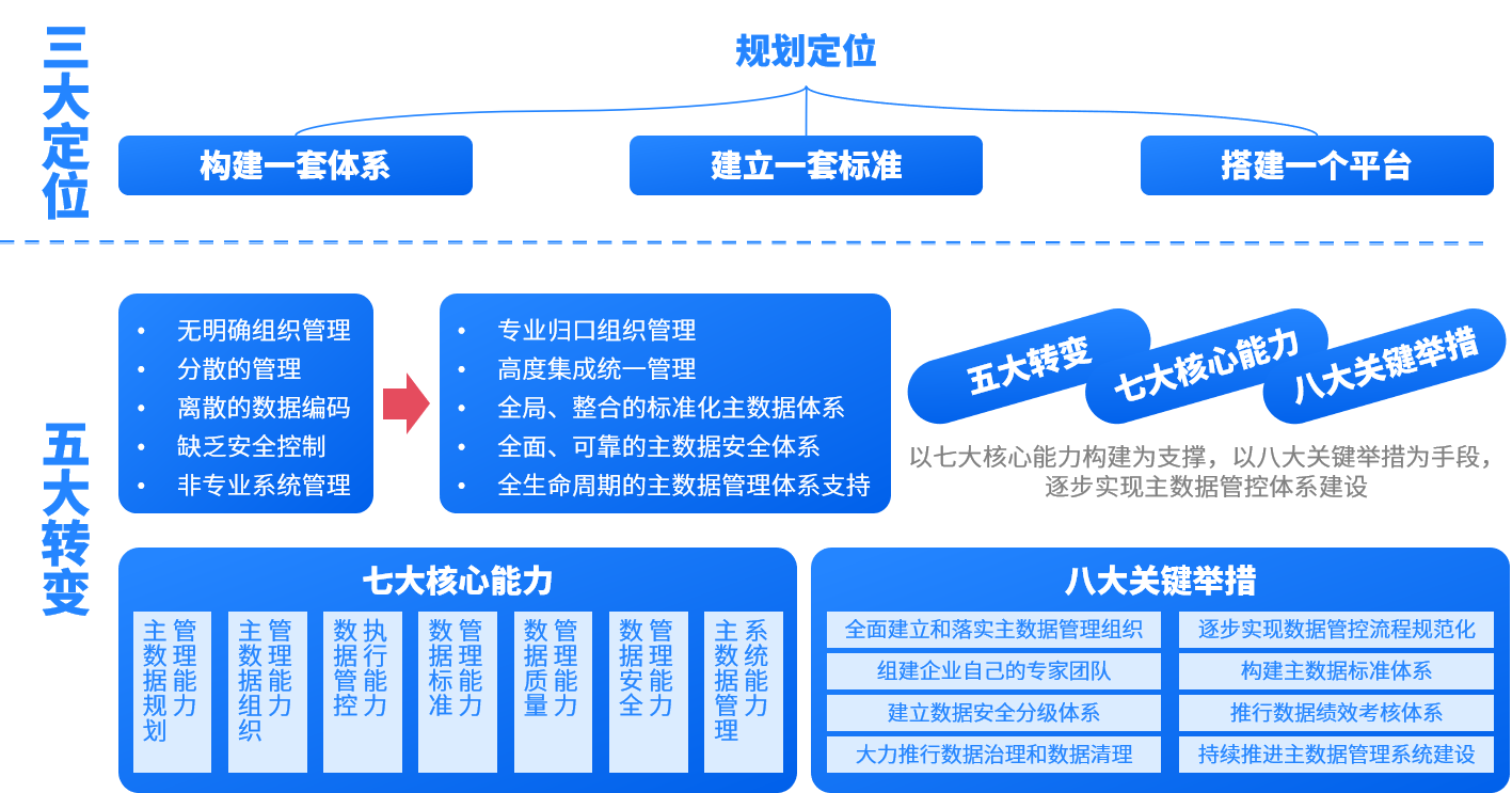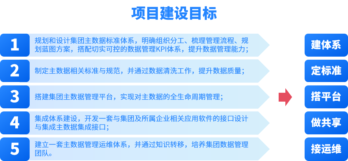 隨著該集團(tuán)業(yè)務(wù)的不斷擴(kuò)展,形成了綠色投資、工程服務(wù)、和高端制造三大業(yè)務(wù)板塊,各類業(yè)務(wù)數(shù)據(jù)不斷增加累積,現(xiàn)已沉淀物料、組織機(jī)構(gòu)、員工、客戶、供應(yīng)商等基礎(chǔ)數(shù)據(jù)。集團(tuán)信息化需求和信息化建設(shè)在此期間也經(jīng)歷了一個從無到有、從簡單到復(fù)雜的逐步深入的過程,從而使得一些需要在整個企業(yè)范圍內(nèi)各個系統(tǒng)中共享的基礎(chǔ)數(shù)據(jù)被分散到各個系統(tǒng)分別管理,導(dǎo)致公司的主數(shù)據(jù)在不同系統(tǒng)中編碼不一致,主數(shù)據(jù)管理缺乏一致性、準(zhǔn)確性、完整性。 在此情況下,該集團(tuán)積極配合國家能源發(fā)展、節(jié)能減排戰(zhàn)略規(guī)劃,立足于客戶需求,秉承“增產(chǎn)節(jié)能,效益型環(huán)保”理念,堅持用科技的力量帶動環(huán)保事業(yè)的發(fā)展,亟需建立一個主數(shù)據(jù)管理系統(tǒng),通過該系統(tǒng)固化相關(guān)數(shù)據(jù)管理流程和管理規(guī)范,以支撐數(shù)據(jù)標(biāo)準(zhǔn)體系的貫徹執(zhí)行,從而更好地實現(xiàn)信息資源的充分共享和最大化利用。 一、建體系 規(guī)劃和設(shè)計集團(tuán)主數(shù)據(jù)標(biāo)準(zhǔn)體系,明確組織分工、梳理管理流程、規(guī)劃藍(lán)圖方案,搭配切實可控的數(shù)據(jù)管理KPI體系,提升數(shù)據(jù)管理能力,實現(xiàn)主數(shù)據(jù)管理的體系化、標(biāo)準(zhǔn)化和平臺化。構(gòu)建一套完整的主數(shù)據(jù)管理體系框架,充分考慮企業(yè)的信息系統(tǒng)及主數(shù)據(jù)需求的實際情況。 二、定標(biāo)準(zhǔn) 制定主數(shù)據(jù)相關(guān)標(biāo)準(zhǔn)與規(guī)范,并通過數(shù)據(jù)清洗工作,提升數(shù)據(jù)質(zhì)量;根據(jù)主數(shù)據(jù)分類明確相關(guān)管理組織以及職責(zé),制定物料主數(shù)據(jù)標(biāo)準(zhǔn)、管理流程和制度。 三、搭平臺 搭建集團(tuán)主數(shù)據(jù)管理平臺,實現(xiàn)對主數(shù)據(jù)的全生命周期管理;依據(jù)主數(shù)據(jù)標(biāo)準(zhǔn)和主數(shù)據(jù)模型定義的規(guī)則進(jìn)行校驗、清洗、發(fā)布,實現(xiàn)對主數(shù)據(jù)的全生命周期管理,并整合出統(tǒng)一的、可信任的主數(shù)據(jù)。 四、做共享 集成體系建設(shè),開發(fā)一套與集團(tuán)及所屬企業(yè)相關(guān)應(yīng)用軟件的接口設(shè)計與集成主數(shù)據(jù)集成接口;通過統(tǒng)一和標(biāo)準(zhǔn)化物料主數(shù)據(jù),可以消除因物料編碼不一致所造成的集團(tuán)之間物料管理混亂和協(xié)同困難的情況,實現(xiàn)集團(tuán)之間信息的共享,進(jìn)一步實現(xiàn)物料的全生命周期跟蹤和追溯。 五、接運維 建立一套主數(shù)據(jù)管理運維體系,并通過知識轉(zhuǎn)移,培養(yǎng)集團(tuán)數(shù)據(jù)管理團(tuán)隊。制定基礎(chǔ)培訓(xùn)、應(yīng)用培訓(xùn)以及運維培訓(xùn)、開發(fā)培訓(xùn)計劃,針對本項目的基本情況宣貫、系統(tǒng)的基礎(chǔ)功能使用操作、日常運維管理、管理員操作等基礎(chǔ)知識進(jìn)行培訓(xùn)。 通過本項目的建設(shè),確定集團(tuán)主數(shù)據(jù)體系建設(shè)的整體發(fā)展思路為“以七大核心能力構(gòu)建為支撐,以八大關(guān)鍵舉措為手段,逐步實現(xiàn)主數(shù)據(jù)管控體系建設(shè)”。即在進(jìn)行主數(shù)據(jù)規(guī)劃管理能力、數(shù)據(jù)組織管理能力、數(shù)據(jù)管控執(zhí)行能力、數(shù)據(jù)標(biāo)準(zhǔn)管理能力、數(shù)據(jù)質(zhì)量管理能力、數(shù)據(jù)安全管理能力、主數(shù)據(jù)管理系統(tǒng)能力“七大核心能力”建設(shè)的基礎(chǔ)上,制定今后集團(tuán)主數(shù)據(jù)體系的各項發(fā)展目標(biāo),并通過主數(shù)據(jù)管理組織固化、專家團(tuán)隊建設(shè)、主數(shù)據(jù)標(biāo)準(zhǔn)體系構(gòu)建、主數(shù)據(jù)治理和主數(shù)據(jù)清理、主數(shù)據(jù)管控流程標(biāo)準(zhǔn)、主數(shù)據(jù)安全分級體系、主數(shù)據(jù)績效考核和主數(shù)據(jù)管理系統(tǒng)建設(shè)等“八大關(guān)鍵舉措”,保障主數(shù)據(jù)體系規(guī)劃內(nèi)容的落實和實施。 三維天地通過本期主數(shù)據(jù)項目建設(shè),促進(jìn)了該集團(tuán)物料數(shù)據(jù)共享率的提高,進(jìn)而使得構(gòu)建全集團(tuán)范圍內(nèi)的“物資管理中心模式”成為可能;通過主數(shù)據(jù)管理實現(xiàn)了數(shù)據(jù)的標(biāo)準(zhǔn)化、一致性和準(zhǔn)確性,提高了數(shù)據(jù)質(zhì)量;減少了重復(fù)數(shù)據(jù)、錯誤數(shù)據(jù)和不完整數(shù)據(jù)的出現(xiàn),提高了數(shù)據(jù)的可用性和可靠性。 主數(shù)據(jù)管理使得該集團(tuán)能夠更好地整合和管理各個二級單位的數(shù)據(jù),從而提高了業(yè)務(wù)流程的效率;通過統(tǒng)一的數(shù)據(jù)源,減少了數(shù)據(jù)傳遞和處理的時間,降低了業(yè)務(wù)成本;為該集團(tuán)提供了準(zhǔn)確、及時和全面的數(shù)據(jù)支持,有助于提高企業(yè)的決策能力;有助于實現(xiàn)企業(yè)內(nèi)部各個信息系統(tǒng)的集成,提高信息系統(tǒng)的協(xié)同效應(yīng);通過對主數(shù)據(jù)的分析和挖掘,該集團(tuá