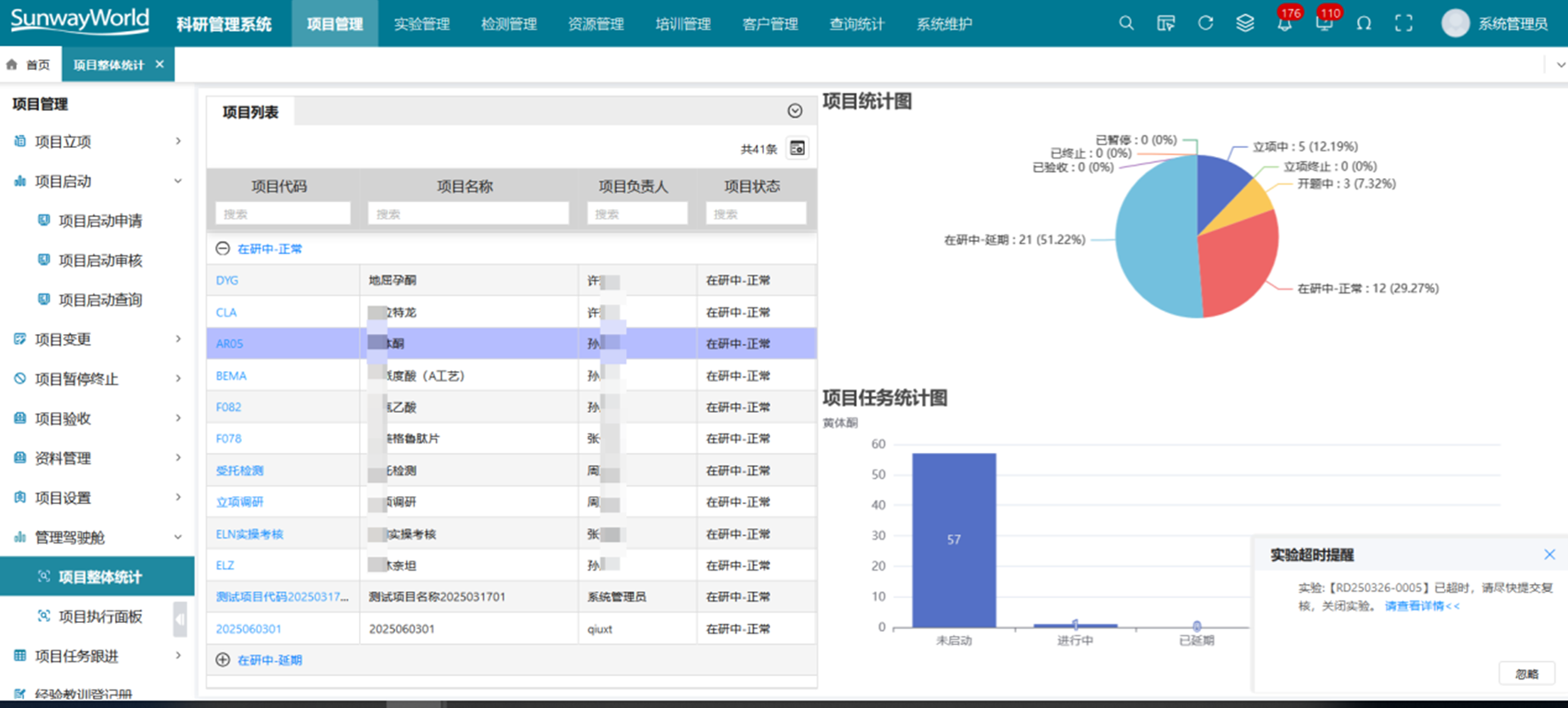 RDMS系統(tǒng)支持從項目立項、階段劃分、任務(wù)分配到資源調(diào)度與進度追蹤的全過程管理,專為藥品研發(fā)多項目并行設(shè)計。系統(tǒng)內(nèi)置甘特圖、WBS結(jié)構(gòu)、關(guān)鍵路徑管理與任務(wù)依賴關(guān)系設(shè)置,自動生成進度報告與延期提醒。項目經(jīng)理可按研究階段(如靶點發(fā)現(xiàn)、臨床前、IND申報)設(shè)定目標(biāo),分配實驗任務(wù),追蹤各責(zé)任人的執(zhí)行情況。系統(tǒng)還能集成預(yù)算模塊,實現(xiàn)人力、設(shè)備、材料等資源調(diào)度與成本控制,提升項目執(zhí)行的透明度與效率。