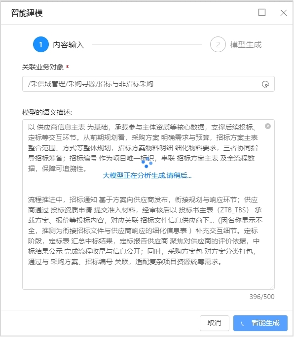 數(shù)據(jù)建模智能體核心邏輯在于“語(yǔ)義理解 + 自動(dòng)化生成”,NLP 技術(shù)能深度解析業(yè)務(wù)需求的自然語(yǔ)言描述(如 “以供應(yīng)商信息為基礎(chǔ)構(gòu)建招投標(biāo)的業(yè)務(wù)模型”),提取關(guān)鍵實(shí)體(招標(biāo)方案、項(xiàng)目方、供應(yīng)商)、屬性(投標(biāo)類型、投標(biāo)價(jià)、時(shí)間)與關(guān)系(招標(biāo)項(xiàng)目——供應(yīng)商的歸屬關(guān)系);