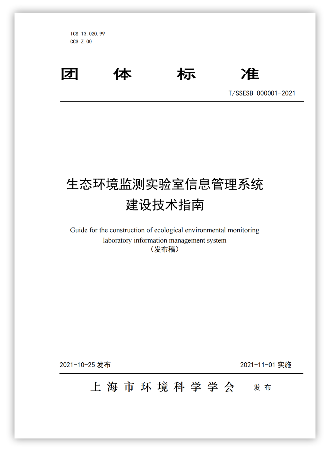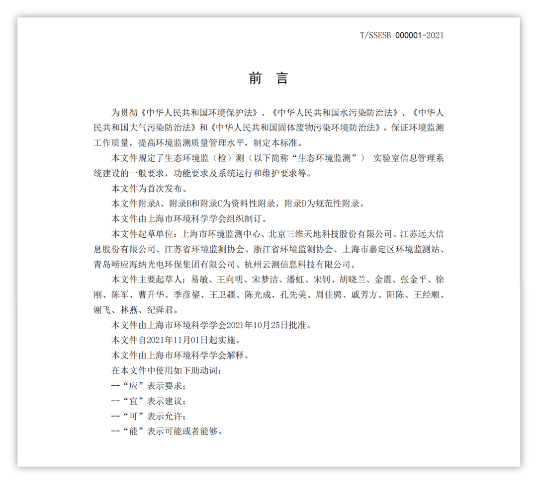 10月25日,由上海市環(huán)境監(jiān)測中心、北京三維天地科技股份有限公司及江蘇、浙江省環(huán)境監(jiān)測協會等八家單位共同起草的《生態(tài)環(huán)境監(jiān)測實驗室信息管理系統(tǒng)建設技術指南》,經上海市環(huán)境科學學會批準,將于2021年11月01日起正式實施。