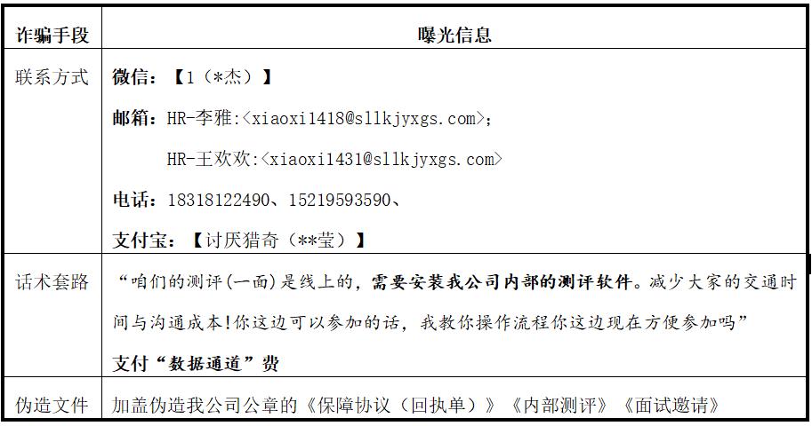 近期,我公司發(fā)現(xiàn)有不法分子冒用我公司名義,通過微信、短信、郵件等非法手段,以“虛假招聘職位”為幌子,誘導(dǎo)求職者支付所謂的“數(shù)據(jù)通道”費、“安裝內(nèi)部測評軟件”等進行詐騙。此類違法行為不僅嚴重侵害了廣大求職者的合法權(quán)益,也對我公司聲譽和社會形象造成了極其惡劣的影響。為了維護公眾利益、保障公司聲譽,我公司現(xiàn)發(fā)布此嚴正聲明: 以上信息均為詐騙分子偽造請廣大求職者提高警惕,切勿輕信!