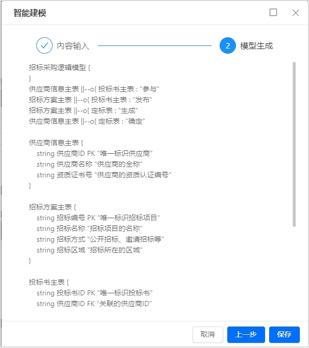 數(shù)據(jù)建模智能體核心邏輯在于“語(yǔ)義理解 + 自動(dòng)化生成”,NLP 技術(shù)能深度解析業(yè)務(wù)需求的自然語(yǔ)言描述(如 “以供應(yīng)商信息為基礎(chǔ)構(gòu)建招投標(biāo)的業(yè)務(wù)模型”),提取關(guān)鍵實(shí)體(招標(biāo)方案、項(xiàng)目方、供應(yīng)商)、屬性(投標(biāo)類型、投標(biāo)價(jià)、時(shí)間)與關(guān)系(招標(biāo)項(xiàng)目——供應(yīng)商的歸屬關(guān)系);